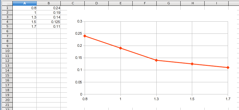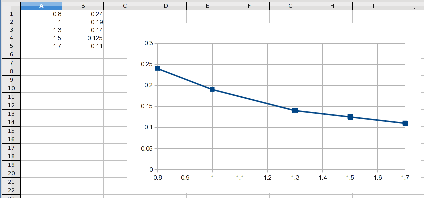 Это было сделано начиная с 0.78 и через интервал 0.24. При округлении значений оси X до одного десятичного знака отображаются следующие значения хотеть. Однако сетки по-прежнему находятся в пропорциональных местоположениях, и вы можете видеть, что линии сетки фактически не проходят через точки данных (за исключением 1.5, что оказалось точным значением X).