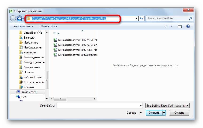 Таким образом, даже если у вас не включено автосохранение, то все равно имеется возможность восстановления книги. Правда, файлы этих двух типов расположены в разных директориях. Давайте узнаем, где они размещаются.