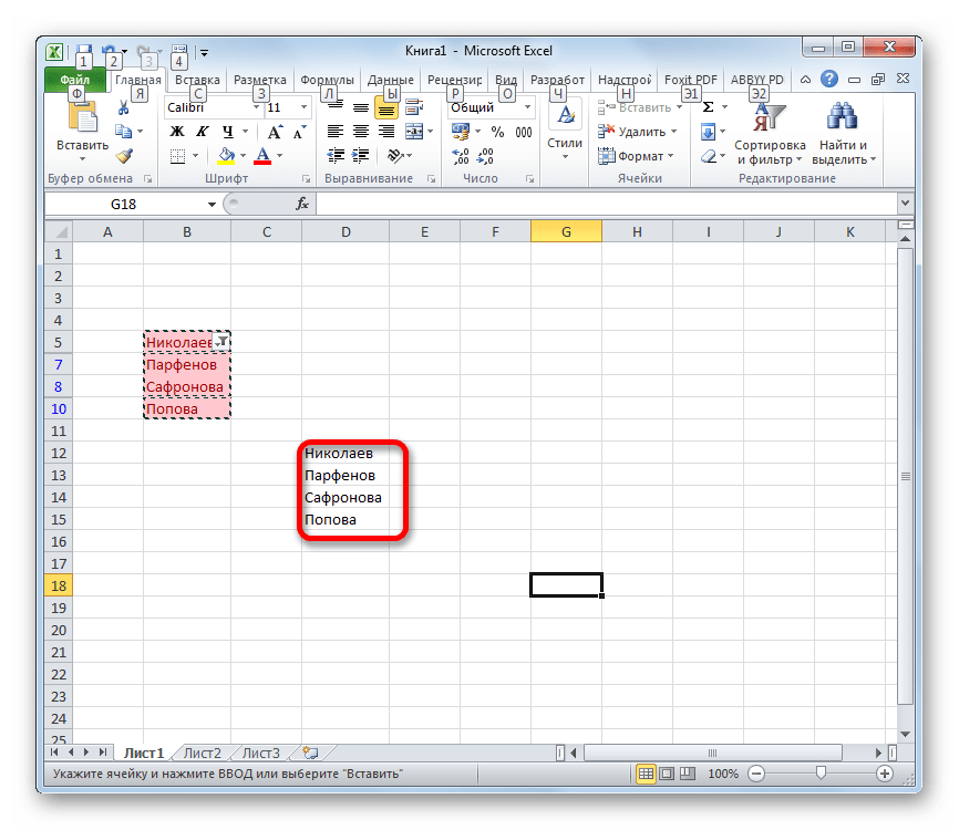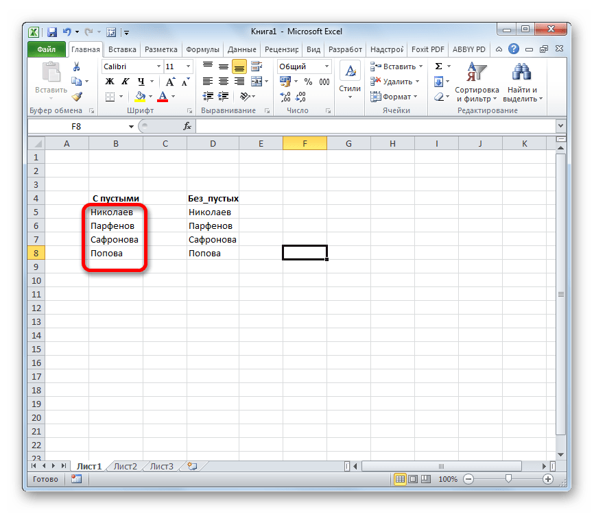 В результате, из всего выделенного диапазона мы оставили только заполненные ячейки.