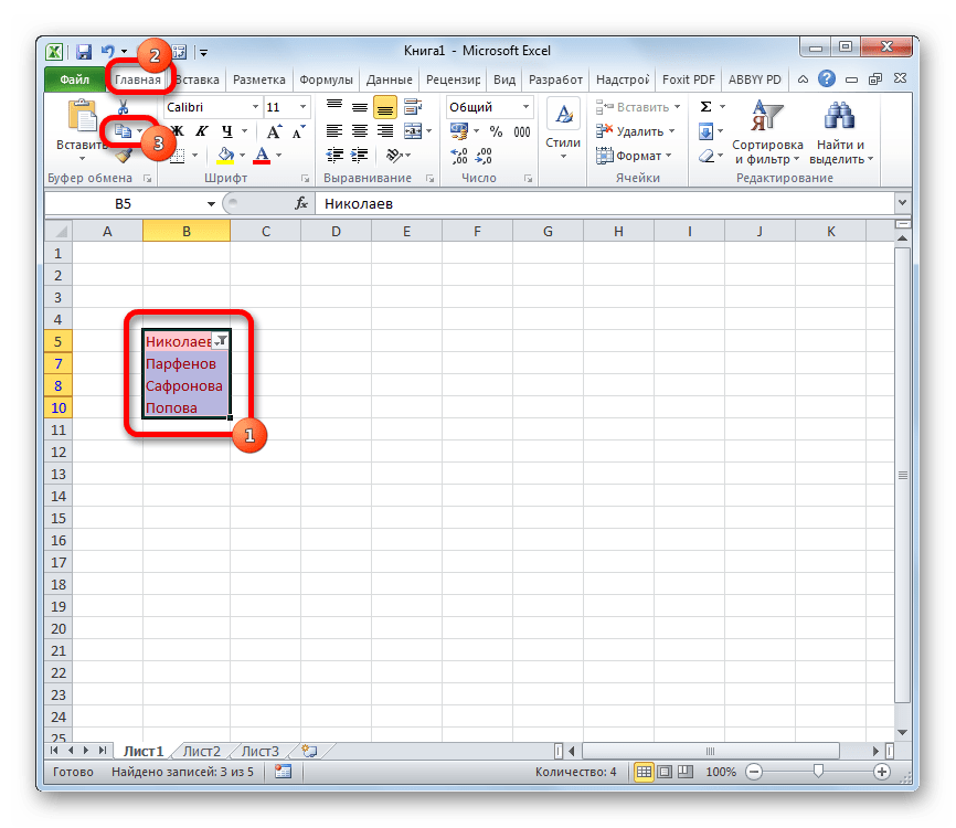 - Нажимаем кнопку “Копировать” в группе инструментов “Буфер обмена” (вкладка “Главная”).