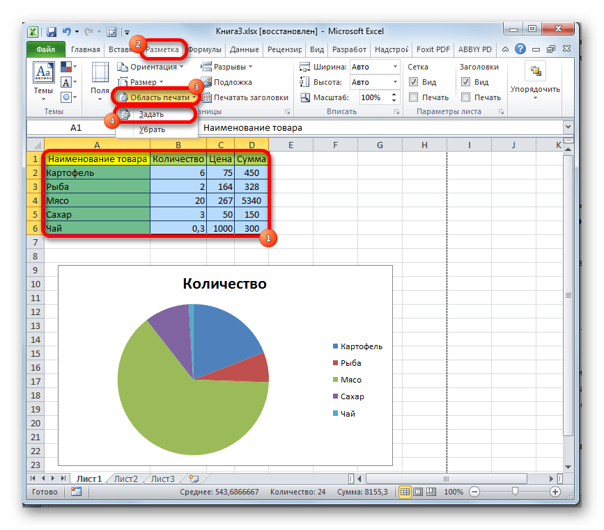 2. Перейдите на вкладку «Макет страницы» и в группе «Параметры страницы» нажмите «Область печати», затем выберите «Добавить в область печати».
