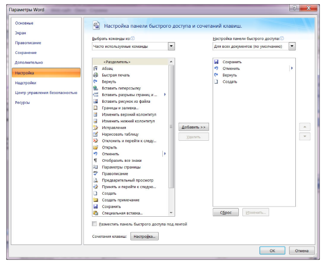 - В диалоговом окне Настройка нажмите клавиши ALT+C, чтобы открыть вкладку Команды .