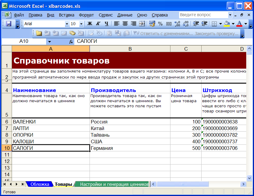 Если вы решили нам доверять, включите макросы в Excel и «запустите» скачанный файл Ценники.xls Когда рабочая книга Excel для печати ценников откроется, переключитесь на лист Товары и заполните номенклатуру товаров вашего магазина: