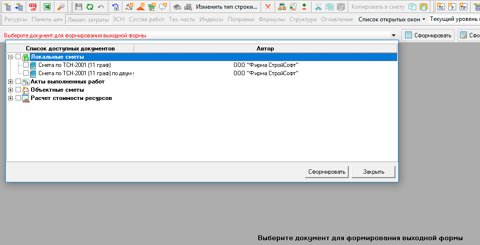 Внимание! Сохраненный файл содержит только исходные данные сметного документа, поэтому менять место сохранения файла не имеет смысла. Выбор формы и настройка внешнего вида будет производиться далее