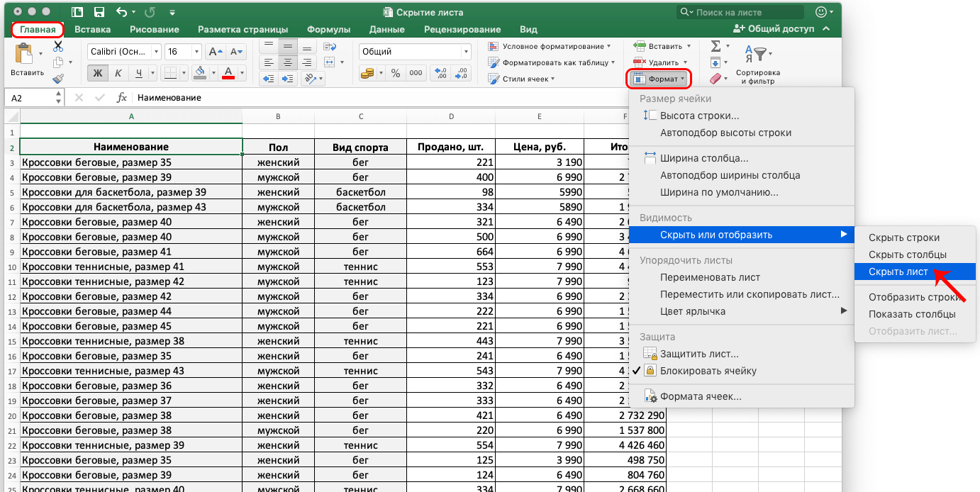 - После выполнения всех этих действий лист будет спрятан от глаз других людей.