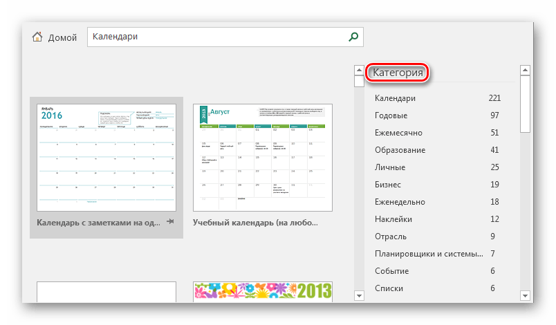 - Запустите программу Эксель. В открывшемся окне вы увидите предлагаемые для выбора типы шаблонов. Среди них вы найдете категорию Календари.