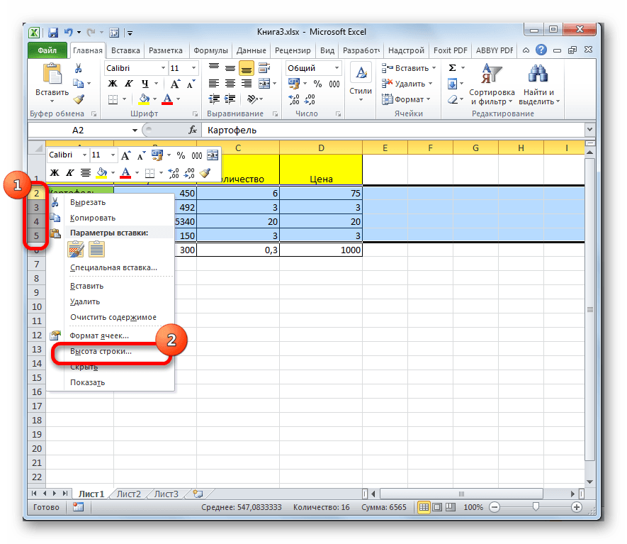 Высота строки в Excel