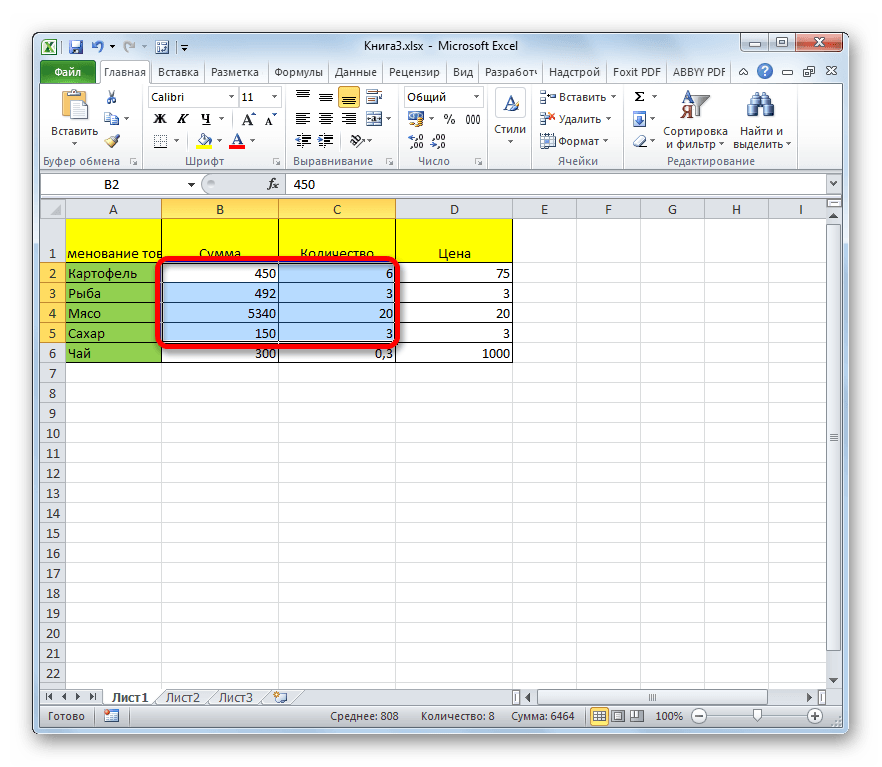 - Производим выделение столбиков А, В и С.