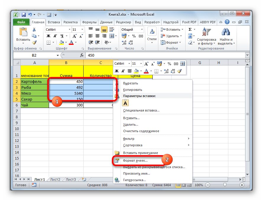 3 – кликаем правой клавишей мыши по выделенной области, в контекстном меню выбираем пункт – «Формат ячеек». Смотри рисунок, и выставляем параметры те, которые показаны у меня: