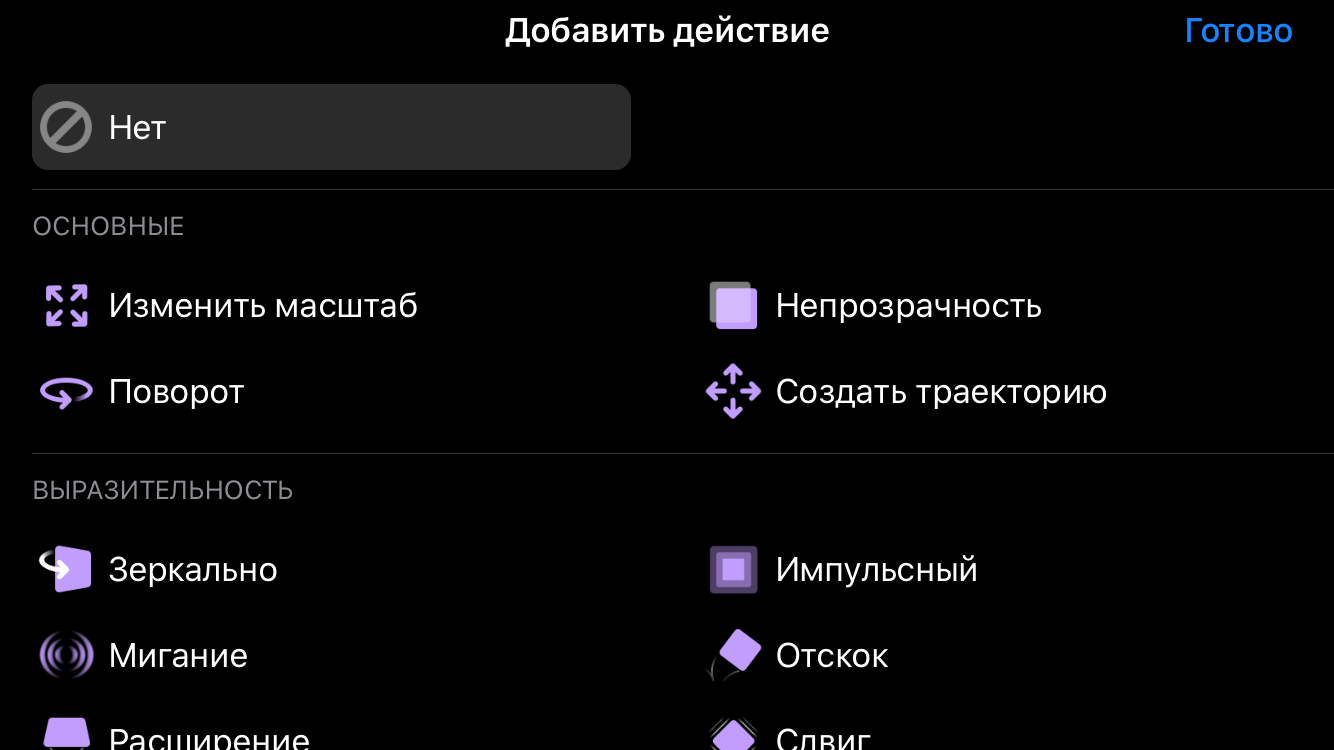 После выбора эффекта, у вас есть возможность изменить анимацию. Можно изменить время перехода и порядок ее появления.