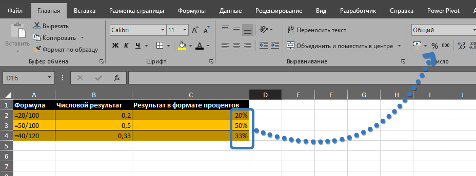 , а умножение на 100 происходит автоматически, когда пользователь выбирает процентный формат: