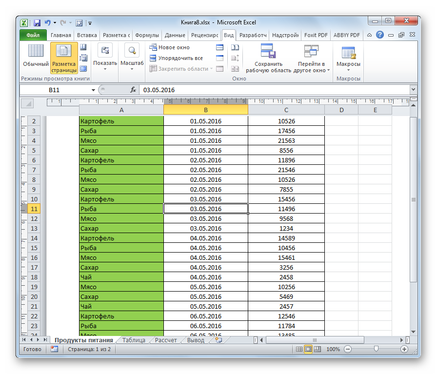 - После этого открываем вкладку «Вид» и включаем страничный режим так же, как и было описано ранее. Или же нажать на иконку на панели состояния. Выбирайте наиболее удобный для вас метод.
