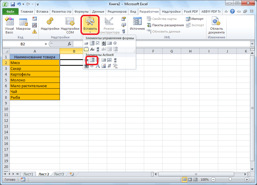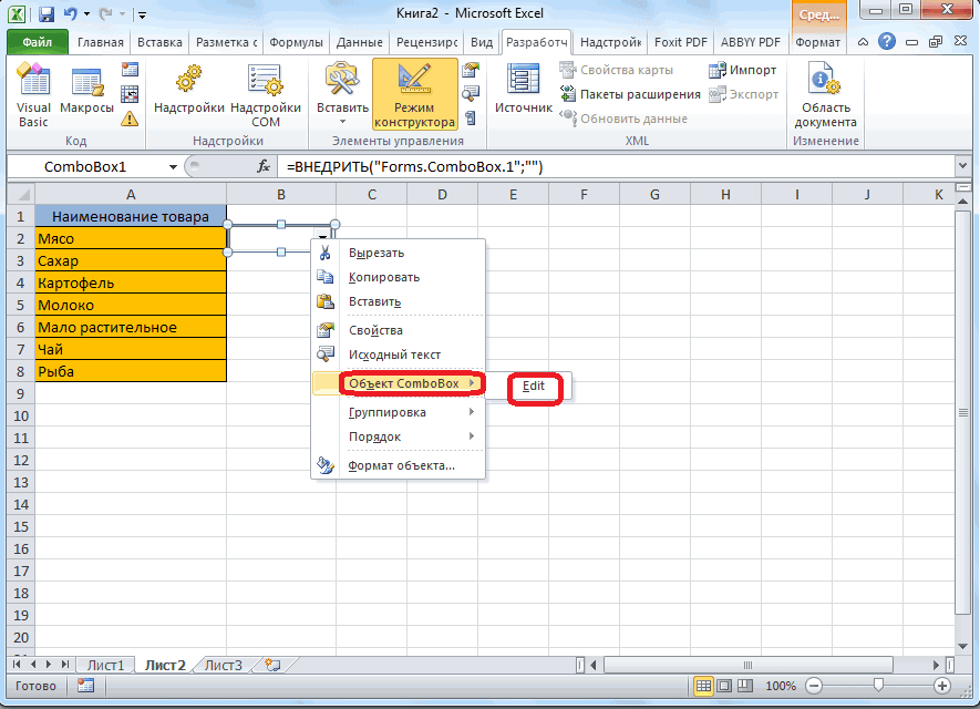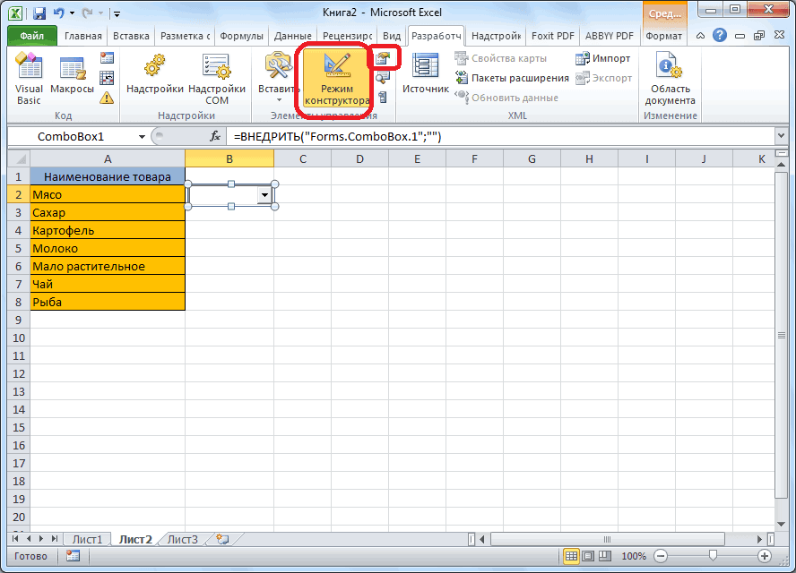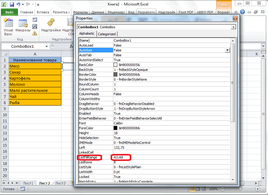 Фактически, этим мы создаем мы сможем потомЖмем «Свойства» – открывается выпадающего списка будут списком. Вкладка «Разработчик»