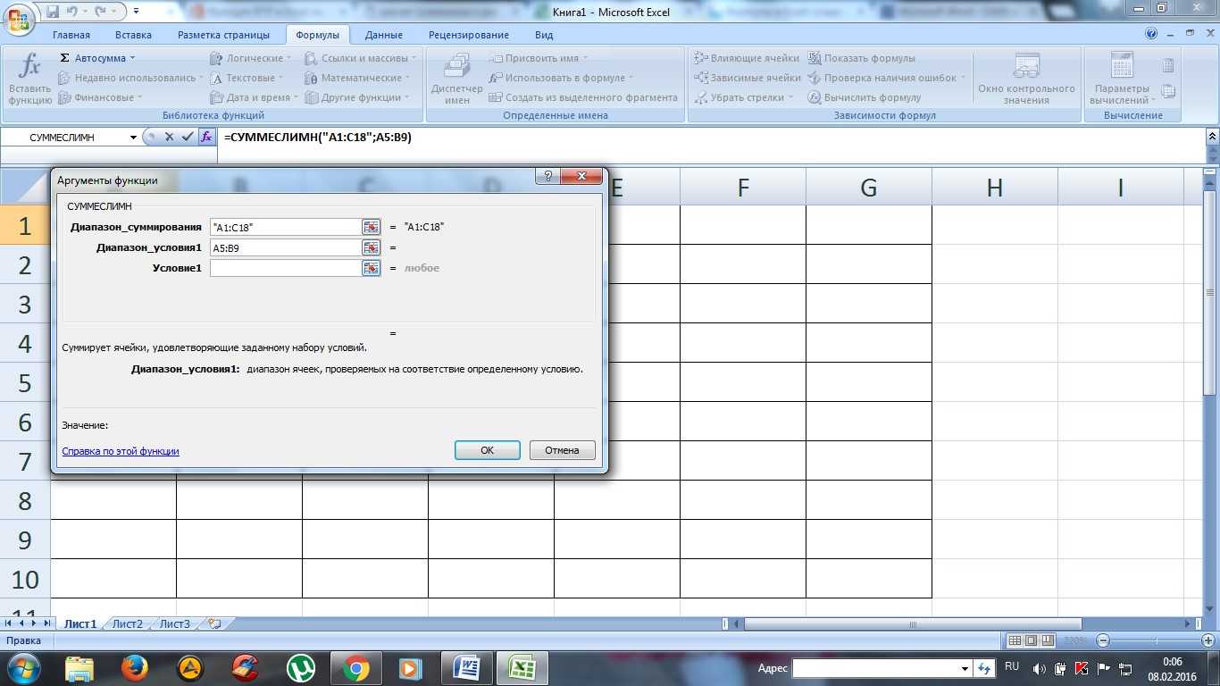 Пропишем формулу для этих условий в нужной нам ячейке.