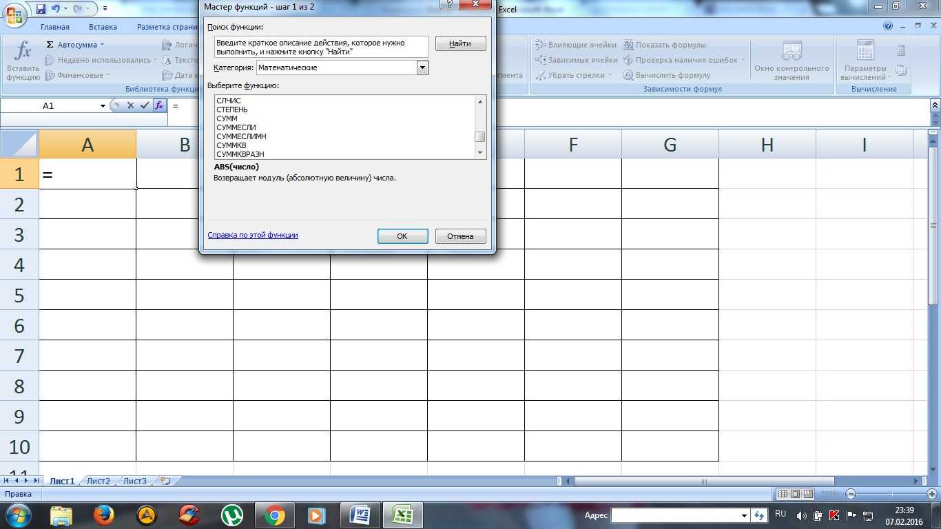 Если поставить курсор мышки на любую ячейку и нажать на пункт «выбрать функцию», то появляется мастер функций.