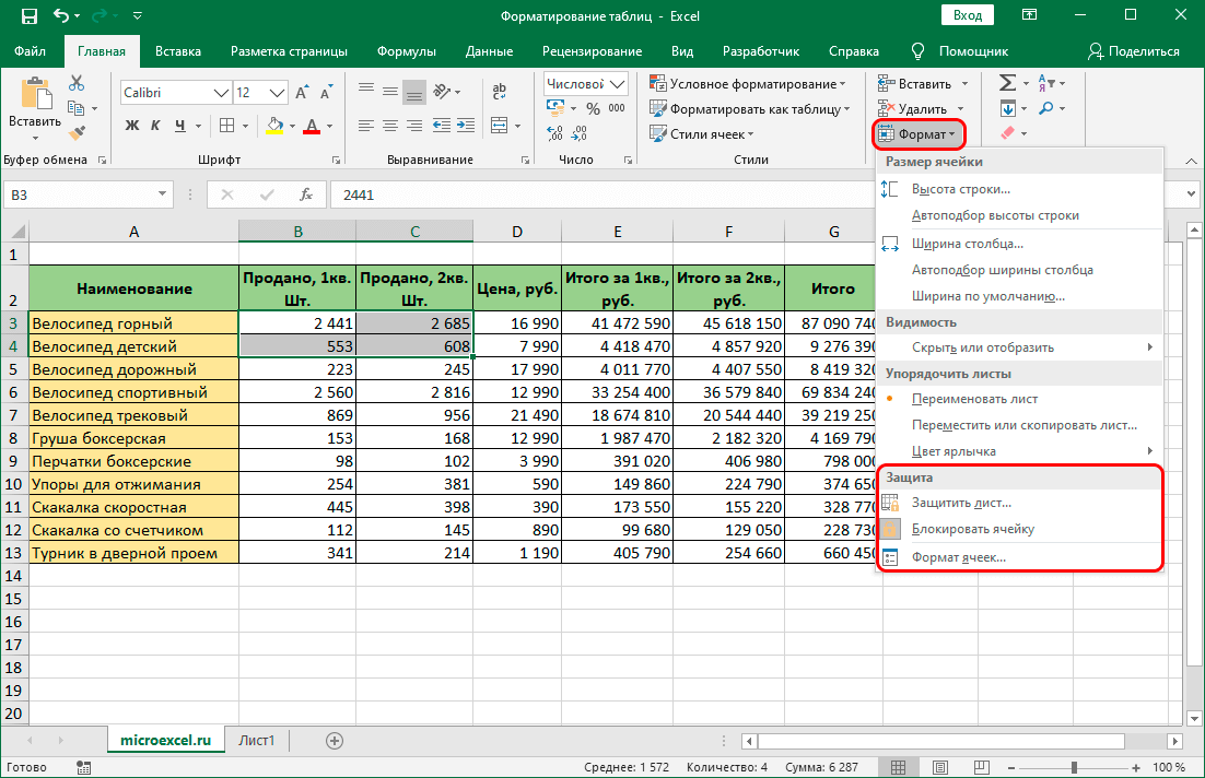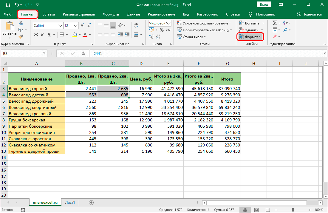 Как создать таблицу в Эксель: Форматирование ячеек с помощью команд вкладки Главная