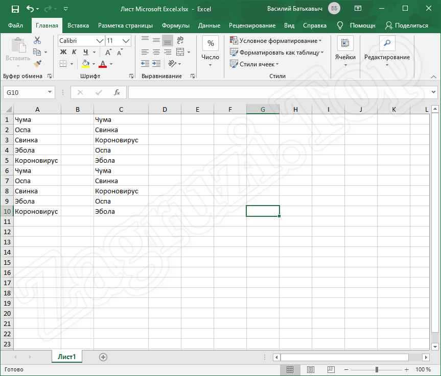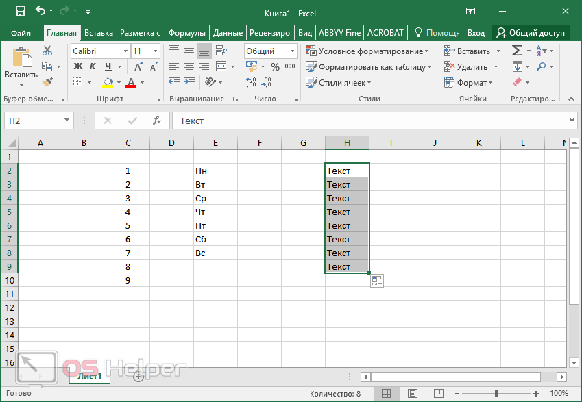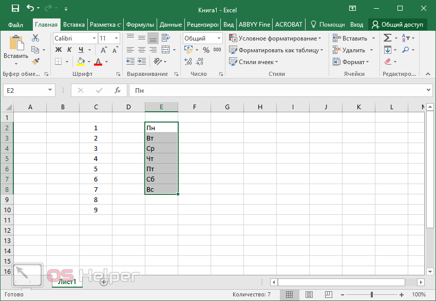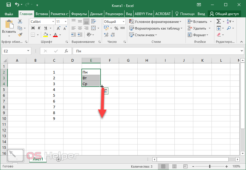 Теперь вы можете при помощи автозаполнения ячеек ввести свой список.