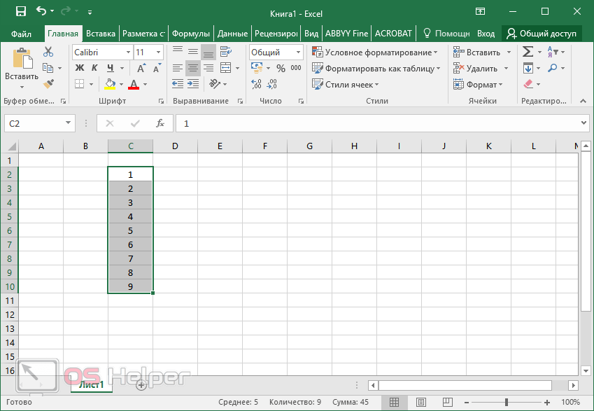 - Наберите несколько чисел. При этом они должны находиться в одной колонке или одной строке. Кроме этого, желательно, чтобы они шли по возрастанию (порядок играет важную роль).