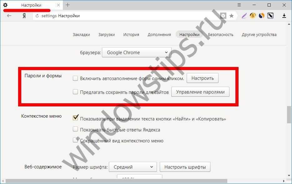 Напоследок рассмотрим автозаполнение форм в отечественном Яндекс браузере. В разделе «Пароли и формы» существует опция по включению данного сервиса одним кликом. Также вы можете добавить нужные сведения, а также удалить их или очистить всю историю.