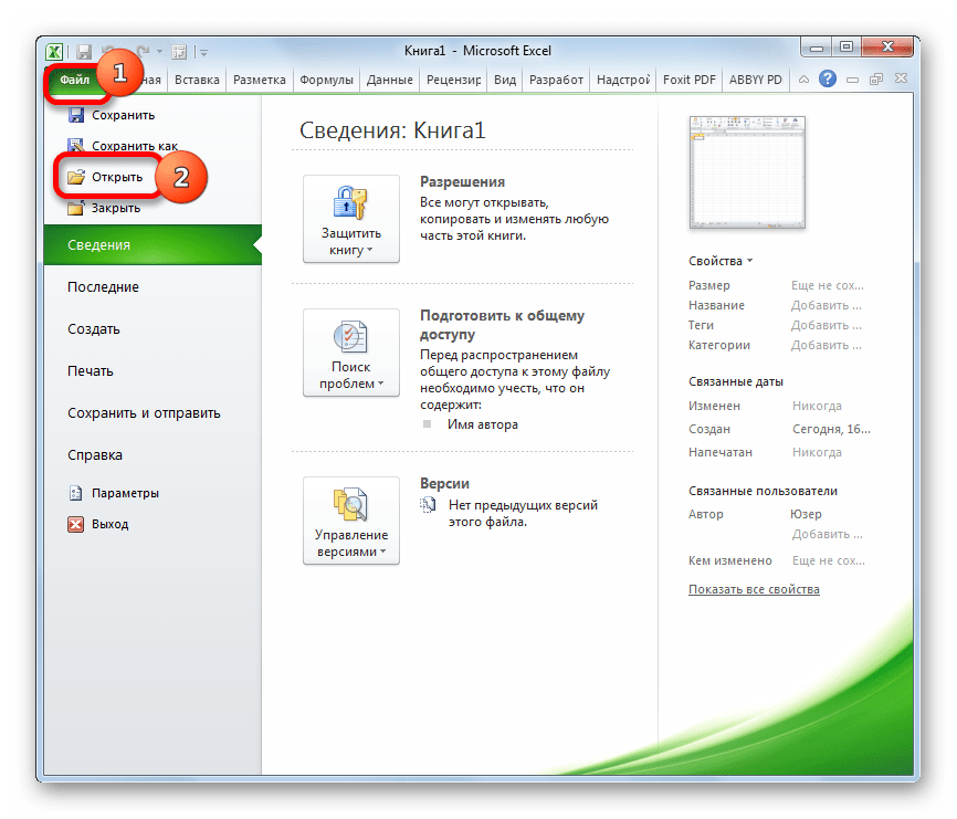 Существует также способ открыть документ CSV через вкладку «Файл» программы Excel.