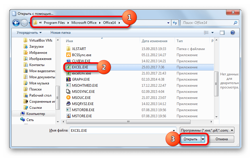 - Находясь в Проводнике Windows в той директории, где расположен файл, кликаем правой кнопкой мыши по нему. Запускается контекстное меню. Выбираем в нем пункт «Открыть с помощью». Если в дополнительном открывшемся списке имеется наименование «Microsoft Office», то кликаем по нему. После этого документ просто запустится в вашем экземпляре Экселя. Но, если данного пункта вы не обнаружите, то щелкайте по позиции «Выбрать программу».