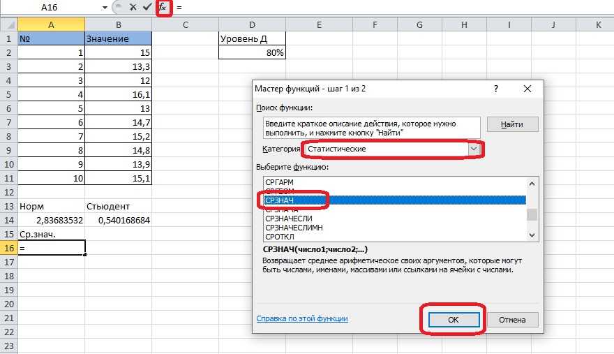 Для расчета границ интервала необходимо узнать, каково среднее значение по нему, с помощью функции СРЗНАЧ.