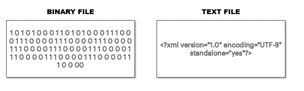 For example a XML file usually it’s own notation of tags and markup, a HTML webpage has universally accepted standards such as HTML5, CSV files have columns and rows separated by column and row delimiters. The downside of text files is that they need overhead to build the structure into the text file itself e.g. a single integer variable in an XML file will have to be embedded in a set of tags.