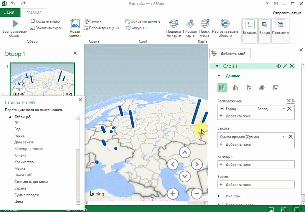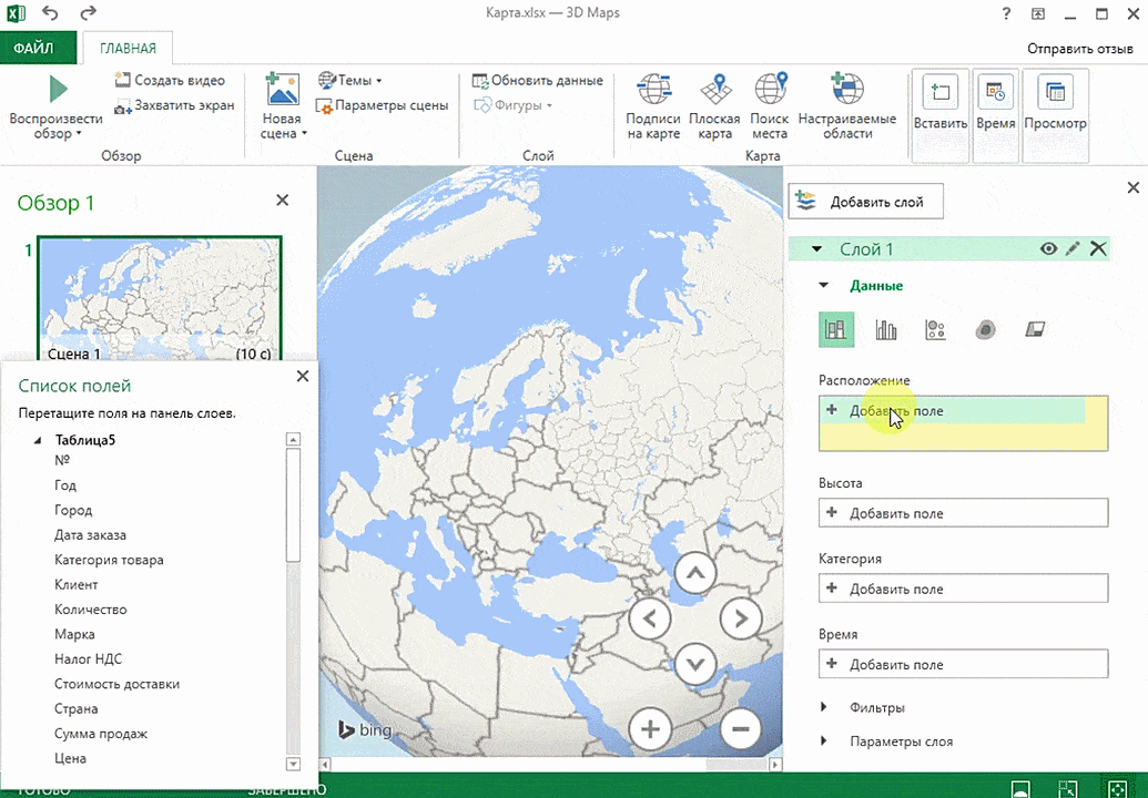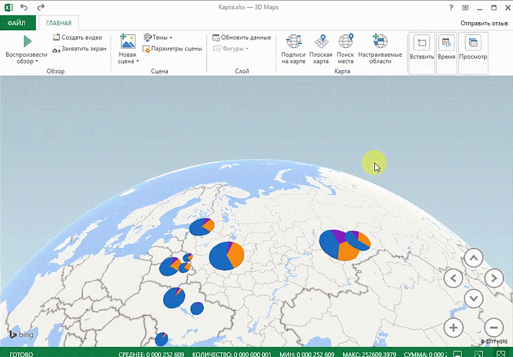 - На вкладке «Вставка» есть кнопка 3D-карта.