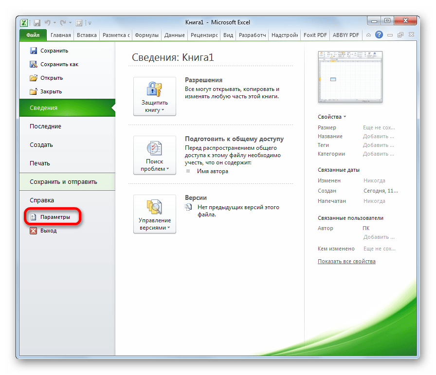 Если вы используете Excel 2007, нажмите кнопку Microsoft Office , а затем – кнопку Параметры Excel.