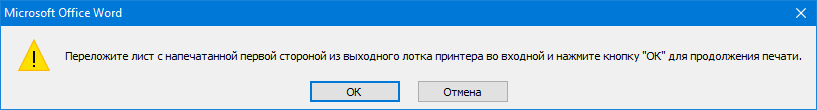 Во время печати Word предлагает вам перевернуть стопку и повторно загрузить страницы в принтер.