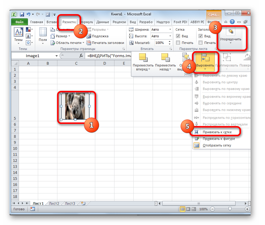 После выполнения этих действий картинка станет привязанной к ячейке.