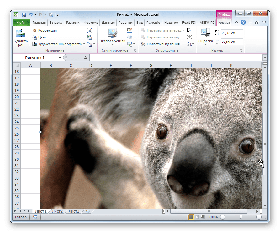 Если скопировать картинку и вставить её в электронную таблицу Эксель, она просто займёт определённое место на листе. Если после этого изменять размеры ячеек, удалять или добавлять новые, то картинка останется на прежнем месте. Несмотря на то, что клетки под ней сдвинутся.