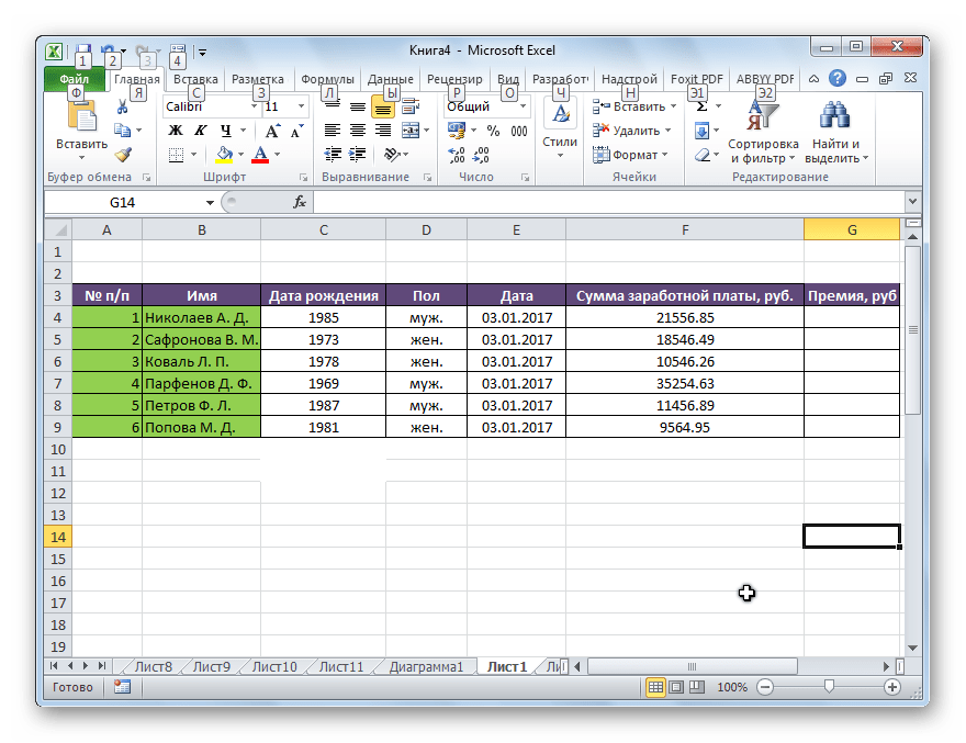 Таким образом, мы получили таблицу с информацией о величине премии для каждого работника предприятия в отдельности.