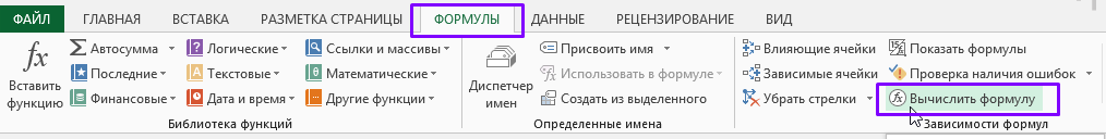 Функция Вычислить формулу в ленте