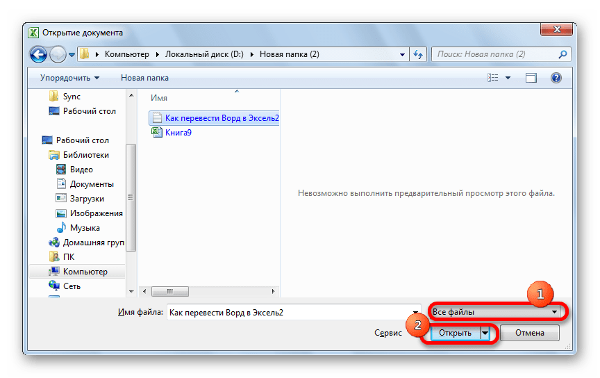 В окне «Открытие документа» в параметре открываемых файлов установите значение «Все файлы». Выберете тот файл, который до этого сохраняли в Ворде, как обычный текст. Жмем на кнопку «Открыть».