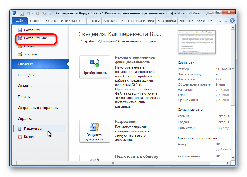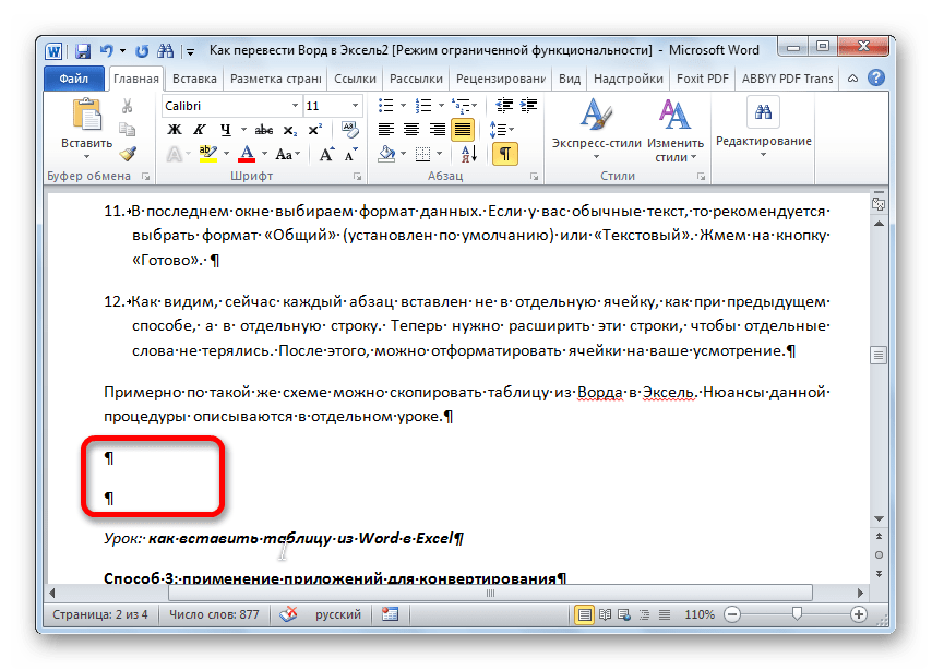 Существует ещё один способ конвертации данных из Ворда в Excel. Он, конечно, существенно сложнее предыдущего варианта, но, в то же время, подобный перенос зачастую более корректен.