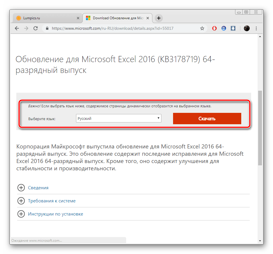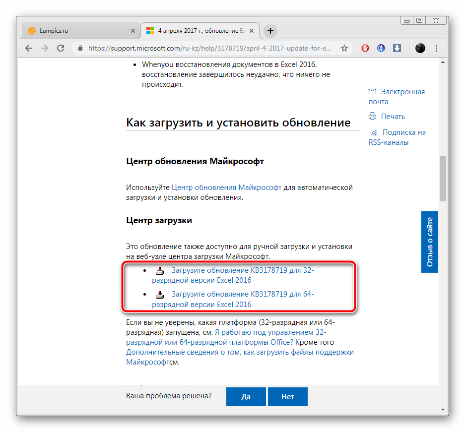 Отдельное руководство есть и для обладателей Excel 2016. Для него в прошлом году было выпущено значимое обновление, корректирующее многие параметры. Инсталляция его не всегда производится автоматически, поэтому компания Microsoft предлагает сделать это вручную.