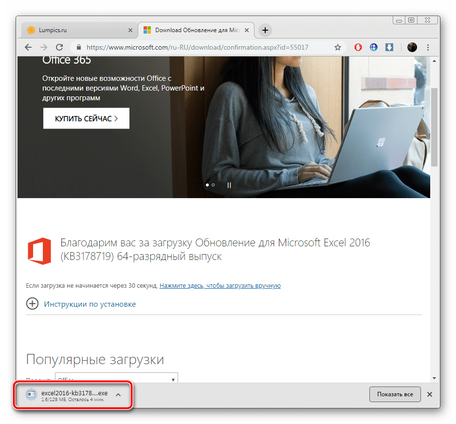 Обновление Microsoft Excel на компьютере