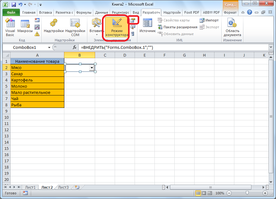 Способ 3 — как в excel сделать выпадающий список с использованием ActiveX