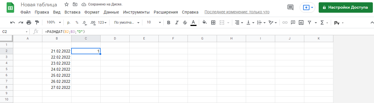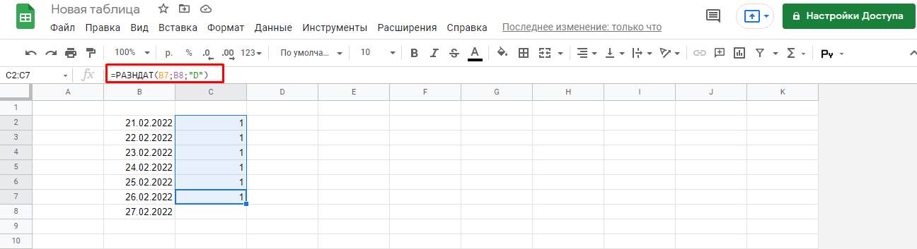 - Во второй параметр, соответственно, прописываем вторую дату или координату ячейки;