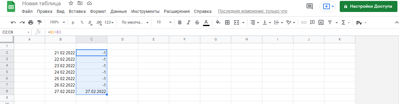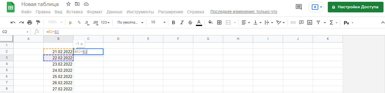 Пример 1. Непосредственно вычитаем одну дату из другой