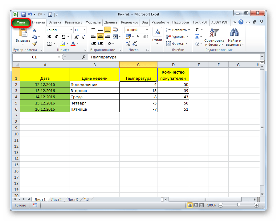 Внизу, в качестве примера, представлена таблица, в которой указана среднесуточная температура воздуха на улице, и количество покупателей магазина за соответствующий рабочий день. Давайте выясним при помощи регрессионного анализа, как именно погодные условия в виде температуры воздуха могут повлиять на посещаемость торгового заведения.