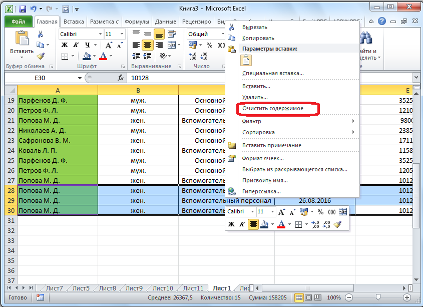 В появившемся контекстном меню выберите вариант «Очистить содержимое». После этого все добавленными вами строки будут очищены от контента, но при этом будут иметь такое же оформление, как и у таблицы.