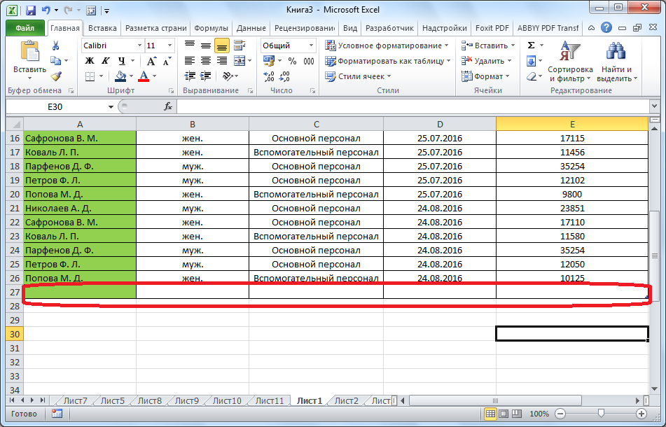 Наиболее часто возникает необходимость вставки строки или нескольких строк в конце готовой таблицы Excel. Для этого следует выполнить несколько действий.