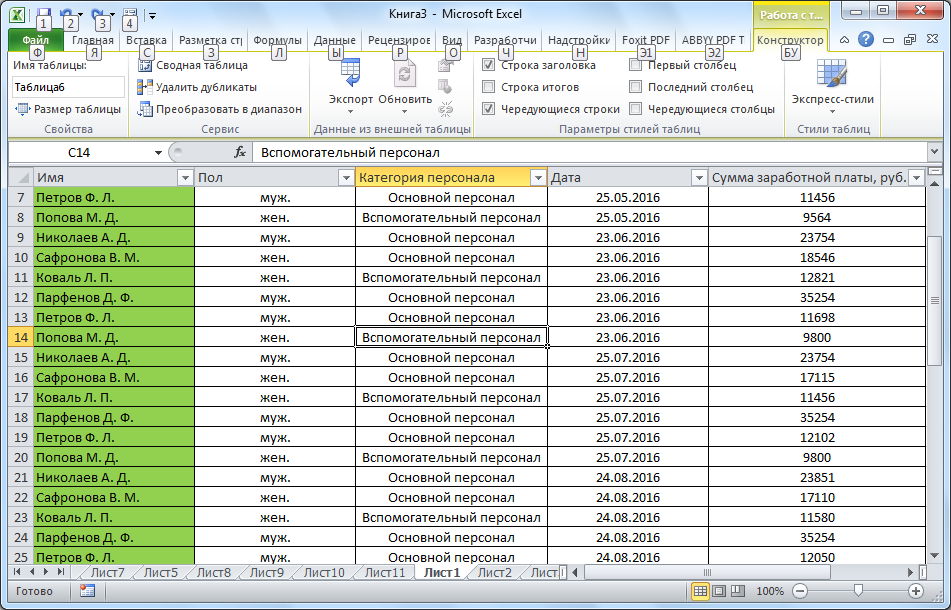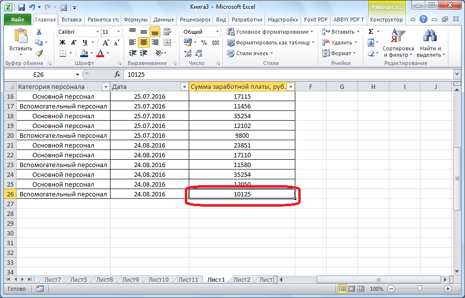 - После отмены фильтра в таблице отобразятся все скрытые элементы.