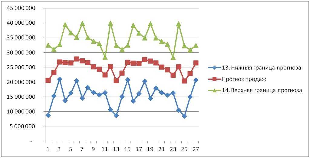 Нижняя граница прогноза = «прогноз продаж» минус «3 сигма».