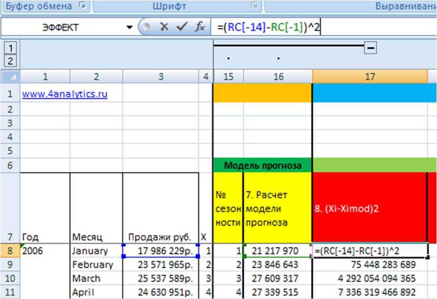 2. Рассчитаем квадрат разницы фактических значений и прогнозной модели (Xi-Ximod)^2 (8 этап во вложенном файле)