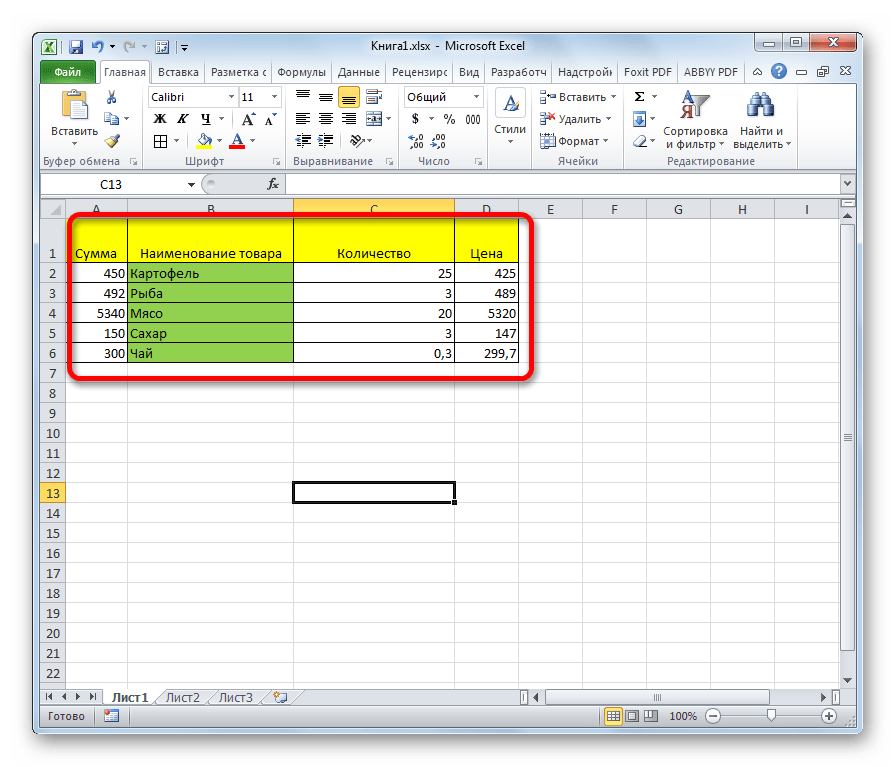 Для создания таблицы нередко приходится объединять несколько ячеек. Для этого нужно их выделить и нажать кнопку «Объединить и поместить в центр» в той же группе.