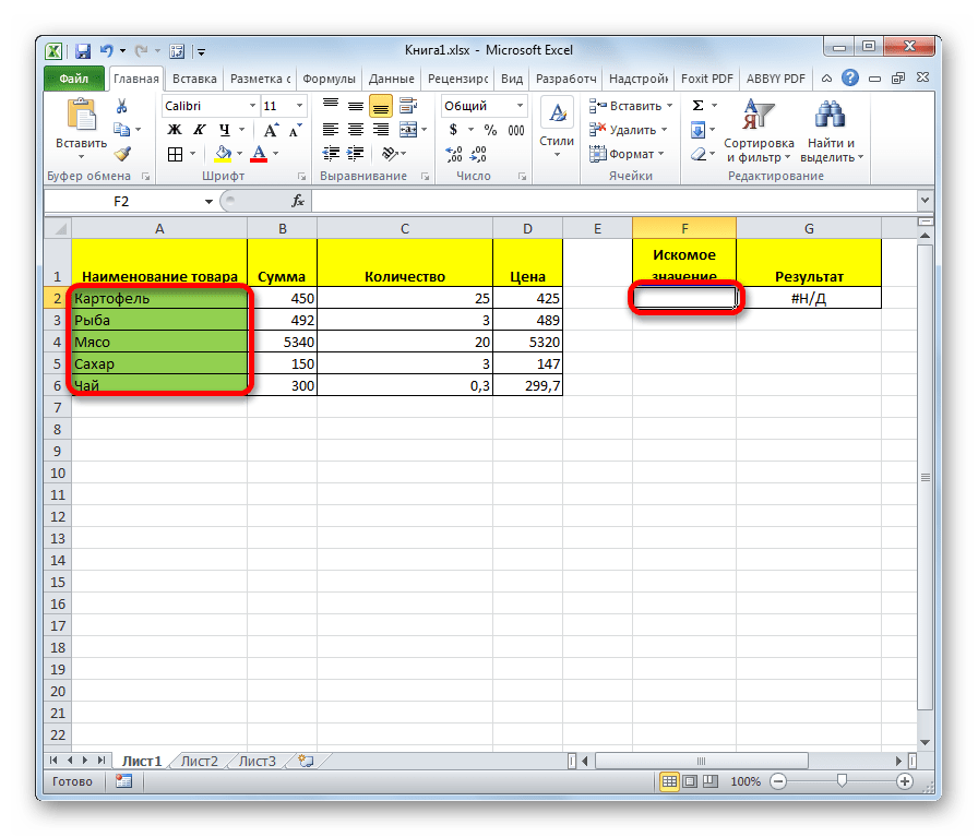Если мы введем в ячейку искомого значения другое наименование, то и результат, соответственно, поменяется.