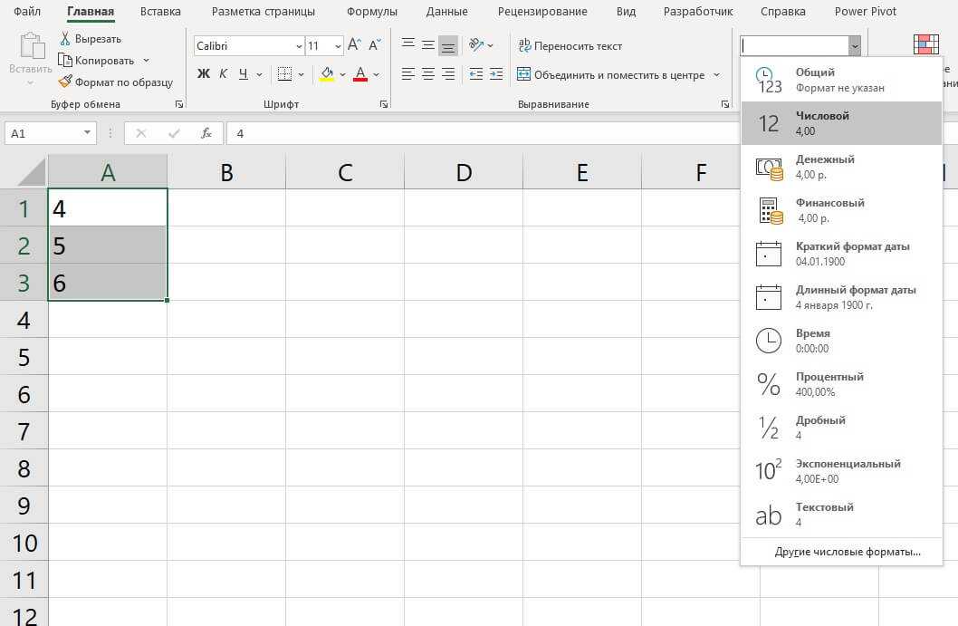 - Перейдите в подгруппу “Число” и в выпадающем списке выберите формат “Числовой”